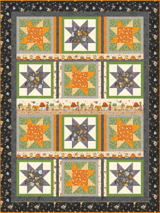 Beloved characters put on their best faces and costumes for Halloween fun in the Haunted Acre Wood collection by W.A. Dodge. Kids will love the totes included on the treat bag panel, where they can choose "trick" or "treat"! The stripe features a Halloween costume parade through the "Haunted" Acre Wood. This collection includes a free table runner, placemat and quilt project.