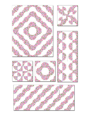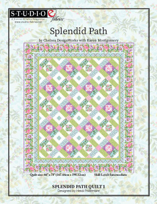 Splendid Path is a 18-sku collection that includes a palette of a pretty array of pinks, aquas, lavenders and lime greens. Chelsea DesignWorks has teamed up with the talents and creativity of Karen Montgomery to create a beautiful new floral collection filled with gorgeous flowers, vines and leaves. Patterns include a border stripe, a trellis, tossed florals, a tone-on-tone floral and ditsies in a variety of colors. Karen’s clever dots and holes cheater pattern provides a multitude of possibilities for quarter circle projects such as the Drunkards Path and Garden Path without the challenges of cutting and sewing curves. Check out the project page for all the other possibilities Karen offers. Her project is free to download. For more quilt instructions, join The Nine Patch a Day Group on Facebook. See a variety of ways to use the panel on YouTube.
